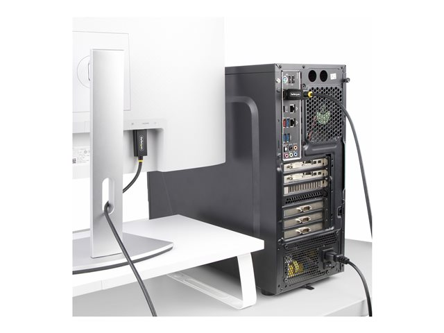 Connectez un ordinateur de bureau doté d'une sortie DisplayPort à un moniteur HDMI capable de prendre en charge le 4K 60Hz en plage dynamique élevée (HDR) à l'aide de ce câble adaptateur actif DisplayPort vers HDMI de 3 mètre.