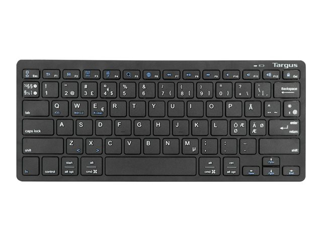 Description du produit Targus Multi-Platform - clavier - QWERTY - Nordique - noir - B2B Périphérique d'entrée Type de périphérique Clavier Interface Bluetooth 3.0 Technologie de connectivité Sans fil Localisation et disposition QWERTY Nordique Fonction de raccourcis clavier Interrupteur marche/arrêt Couleur Noir Dimensions (LxPxH) 28.6 cm x 12.1 cm x 2.24 cm Poids 280 g Programme de ventes par le fabricant Belkin B2B Garantie du fabricant 1 an de garantie -
