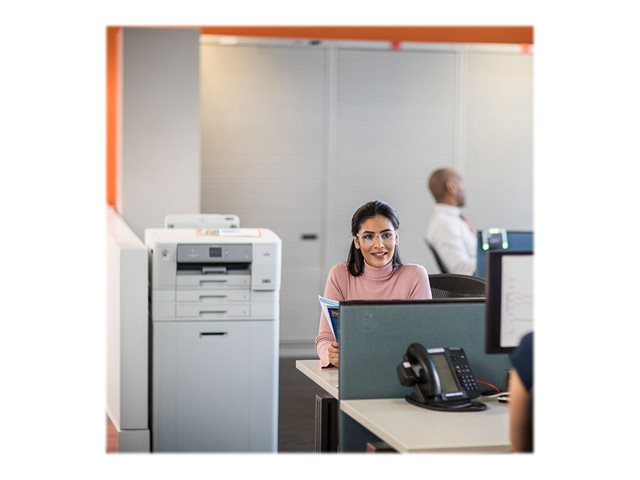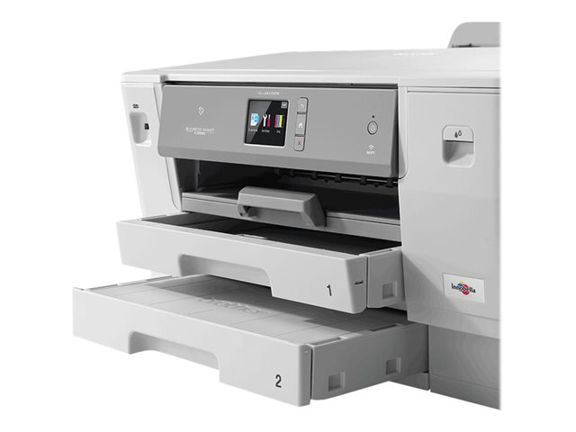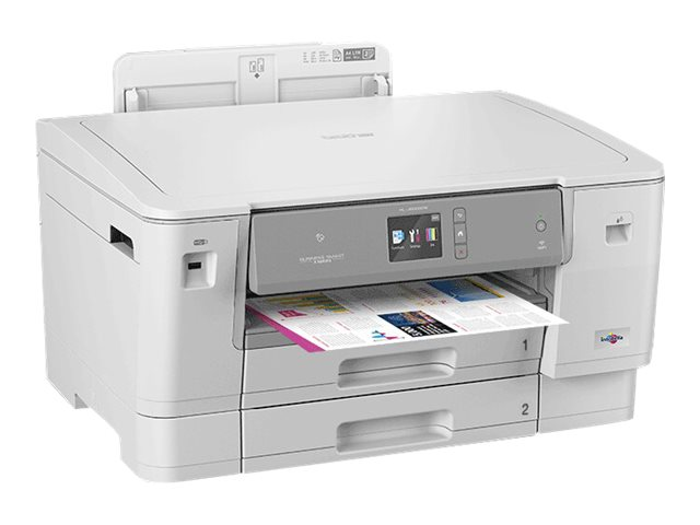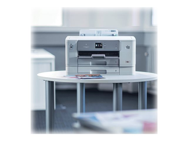 L'imprimante jet d'encre couleur WiFi HL-J6000DW vous permet d'imprimer jusqu'au format A3 avec une sortie de la première impression en moins de 6 secondes. Avec ses bacs papier de 2 x 250 feuilles et ses cartouches d'encre très haute capacité imprimant jusqu'à 6000 pages*,  cette imprimante est parfaite pour les entreprises ayant besoin d'une haute qualité d'impression couleur.