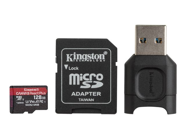 La carte microSD Canvas React Plus de Kingston offre des performances fiables et durables pour des vidéos 4K/8K créatives et professionnelles et des photos haute résolution sans sauts d'images ni lenteurs. Conçues pour prendre en charge les normes UHS-II récentes et dotées d'excellentes indices de vitesse U3 et V90, les cartes microSD Canvas React Plus sont compatibles avec les appareils photo d'action et les drones HD professionnels standards de l'industrie. Prenez des photos séquentielles en mode rafale à des vitesses d'enregistrement allant jusqu'à 165 Mo/s et enregistrez des vidéos de qualité cinématique Ultra HD. La carte microSD Canvas React Plus prend en charge l'A1 Application Performance Class pour accélérer votre flux de travail avec les performances d'application idéales sur smartphones et tablettes. Elle est dotée d'un lecteur microSD MobileLite Plus Kingston avec des vitesses de transfert allant jusqu’à 285 Mo/s pour une efficacité et un flux de travail post-production améliorés.