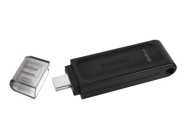 La DataTraveler 70 de Kingston est une clé USB-C légère et portable qui affiche des débits USB 3.2 Gen 1. Elle est prévue pour une utilisation avec les dispositifs USB-C compatibles comme les ordinateurs portables, les tablettes et les téléphones.