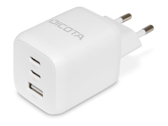 Description du produit DICOTA adaptateur secteur - compact, GaN - USB, 2 x USB-C - 65 Watt Type de Produit Adaptateur secteur Dimensions (LxPxH) 8.43 cm x 3.8 cm x 4.05 cm Poids 116 g Couleur Blanc Localisation Europe Type de prise Total 3: USB, 2 x USB-C Tension requise CA 100-240 V (50/60 Hz) Tension fournie 4.5 / 5 / 9 / 15 / 12 / 20 V Courant électrique max. 5 A Technologie de charge rapide Power Delivery 3.0 Alimentation fournie 65 Watt Détails du dispositif d'alimentation 2 x - USB-C à 24 broches - 5 V - 3 A
