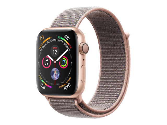 44 mm - or-aluminium - montre intelligente avec boucle sport - nylon tissé - sable rose - taille de bande 145-220 mm - 16 Go - Wi-Fi, Bluetooth - 36.7 g