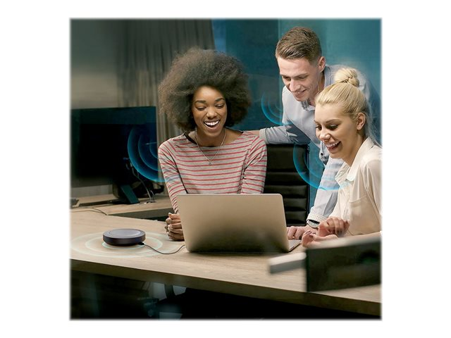 Faites de chaque pièce votre salle de conférence avec le haut-parleur portable Movee. Grâce à la fonction "plug-and-play" USB, la mise en place d'une conférence téléphonique n'est qu'une question de secondes.