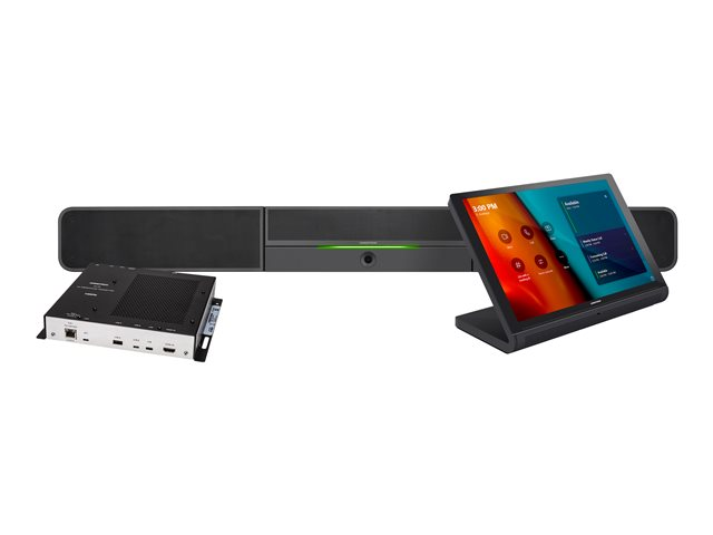 Description du produit Crestron Flex UC-BX30-T - for Small Microsoft Teams Rooms - kit de vidéo-conférence Type de périphérique Kit de vidéo-conférence Contenu du kit Barre son, console d'écran tactile, mini PC Affichage 10.1" TFT / 1920 x 1200 Entrée vidéo Appareil photo numérique Sortie vidéo Carte CODEC Entrée audio Microphone Sortie audio Haut-parleur(s) - stéreo Périphérique d'entrée Écran tactile de 10,1" (filaire) Réseaux Adaptateur réseau - Ethernet, Fast Ethernet -