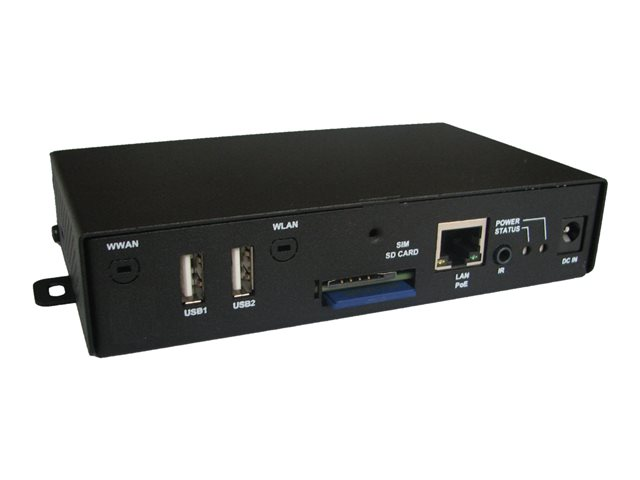 Description du produit INNES SMA300 - lecteur de signalisation numérique Type de périphérique Lecteur de signalisation numérique Dimensions (LxPxH) 14.4 cm x 8.9 cm x 2.9 cm Processeur Freescale i.MX6 Cartes mémoire flash prises en charge Carte mémoire SD Carte mémoire flash incluse Carte mémoire SD - 32 Go Résolution 1080p Interfaces USB 2.0, Fast Ethernet Formats de photos numériques pris en charge GIF, JPEG, PNG, SVG Formats audio pris en charge AAC, MPEG1 Layer2, MP3 Formats de lecture vidéo MPEG-2, WMV, H.264 Système d'exploitation fourni eLinux 2.6 Garantie du fabricant Garantie de 3 ans -