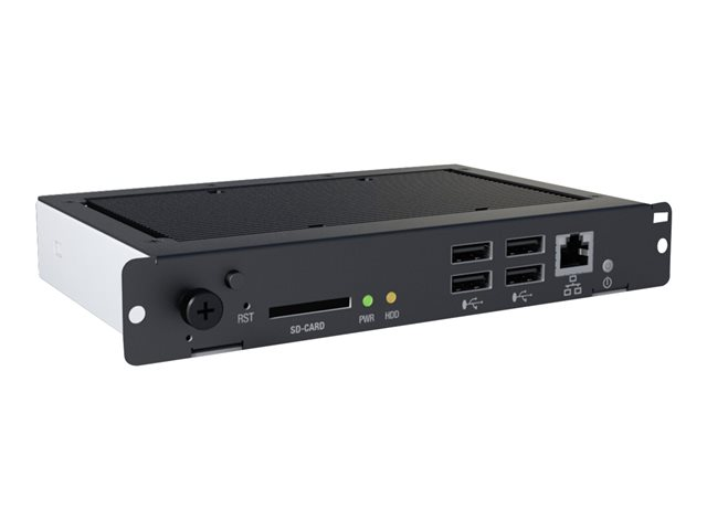 Description du produit NEC OPS Slot-in PC - Model A - lecteur de signalisation numérique Type de périphérique Lecteur de signalisation numérique Dimensions (LxPxH) 12 cm x 3 cm x 20 cm Couleur Noir Processeur Intel Celeron N3160 1.6 GHz quadricœur x 1 RAM 4 Go (installé) / 8 Go (maximum) - DDR3L SDRAM Graphique Intel HD Graphics Disque dur 64 Go Cartes mémoire flash prises en charge Carte mémoire SD Interfaces USB 2.0, Gigabit Ethernet, USB 3.0 Système d'exploitation fourni Windows 10 IoT Enterprise Garantie du fabricant Garantie de 3 ans -
