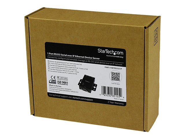 StarTech.com Serveur de périphériques série à 1 port RS232 vers IP Ethernet