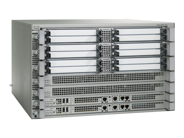 Le routeur Cisco ASR 1006 dans un format de 6 unités de rack (RU) est la solution de routage de périphérie la plus flexible de la série Cisco ASR 1000. Il offre la possibilité de prendre en charge un double processeur de routage et un processeur de services intégré avec un débit de 10 Gbps. Il prend également en charge jusqu'à 12 adaptateurs de ports partagés (SPA), ce qui en fait la solution la plus dense en ports des trois routeurs Cisco ASR 1000.