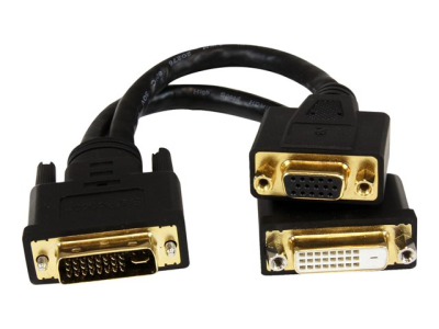 StarTech.com Câble répartiteur en Y / Adaptateur doubleur DVI-I (M) vers DVI-D (F) / VGA (F) de 20cm - Wyse splitter - Noir - Répartiteur DVI - DVI-I (M) pour HD-15 (VGA), DVI-D (F) - 20.32 cm - noir DVI92030202L