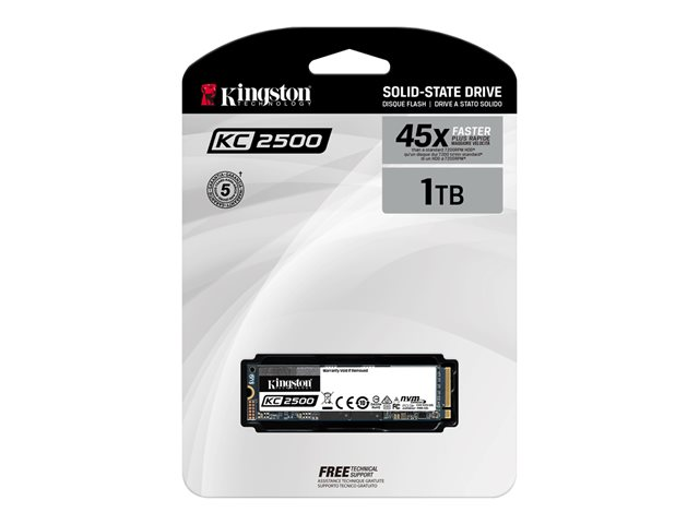 Kingston KC2500 - SSD - chiffré - 1 To - interne - M.2 2280 - PCIe 3.0 x4 (NVMe) - 256-bit AES-XTS - Self-Encrypting Drive (SED) SKC2500M8/1000G