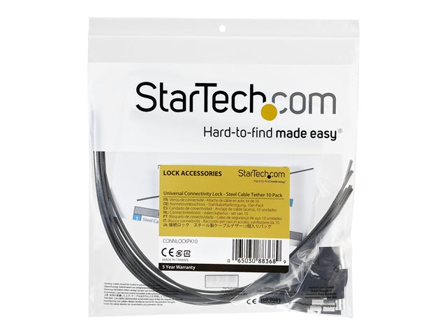 StarTech.com Câbles d'attache de sécurité en acier - Réglable - Paquet de 10 - Câble de sécurité - argent - 30 cm (pack de 10) CONNLOCKPK10