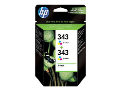 HP 343 - Pack de 2 - 7 ml - couleur (cyan, magenta, jaune) - originale - cartouche d'encre - pour Officejet H470, K7100, K7103; Photosmart 25XX, 2710, 428, C4140, C4150, C4183, C4190