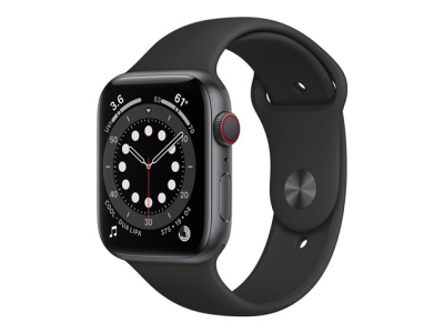 Apple Watch Series 6 (GPS + Cellular) - 44 mm - espace gris en aluminium - montre intelligente avec bande sport - fluoroélastomère - noir - taille du bracelet : S/M/L - 32 Go - Wi-Fi, Bluetooth - 4G - 36.5 g