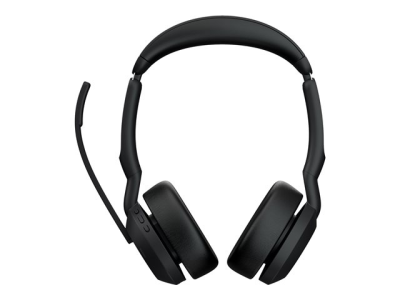 Jabra Evolve2 55 UC Stereo - Micro-casque - sur-oreille - Bluetooth - sans fil - Suppresseur de bruit actif - USB-C, USB-A - noir - avec support de chargement - certifié Zoom, Certifié pour Microsoft Teams, Cisco Webex Certified, Optimisé pour la CU, Certifié Alcatel-Lucent, Certifié Avaya, Certifié Unify, Certifié MFi, Certifié Google Meet, Certifié Amazon Chime, Certifié Google Fast Pair 25599-989-989
