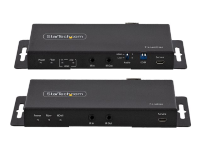 StarTech.com 4K HDMI over Fiber Extender Kit, 4K 60Hz up to 3300ft/1km (Single Mode) or 1000ft/300m (Multimode) LC Fiber Optic, HDR/HDCP, Audio/RS232/IR Extender, HDMI Video Extender - Transmitter and Receiver Kit (ST121HD20FXA2) - Rallonge vidéo/audio/infrarouge/réseau - HDMI - plus de fibre optique - fibre optique - jusqu'à 1 km ST121HD20FXA2