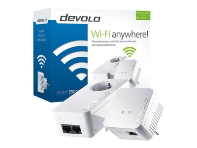 devolo dLAN 550 WiFi - Starter Kit - adaptateur CPL - HomePlug AV (HPAV), IEEE 1901 - 802.11b/g/n - 2,4 Ghz - Branchement mural 9632